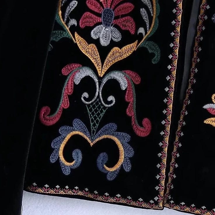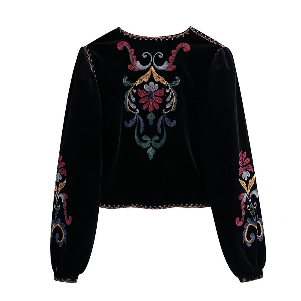 Features: This top blends a chic boho aesthetic with intricate floral embroidery, adding a whimsical and artistic flair to the design. The short length, combined with its relaxed street-style vibe, makes it ideal for casual outings. The embroidered details and easy-going cut give it a timeless, free-spirited appeal.